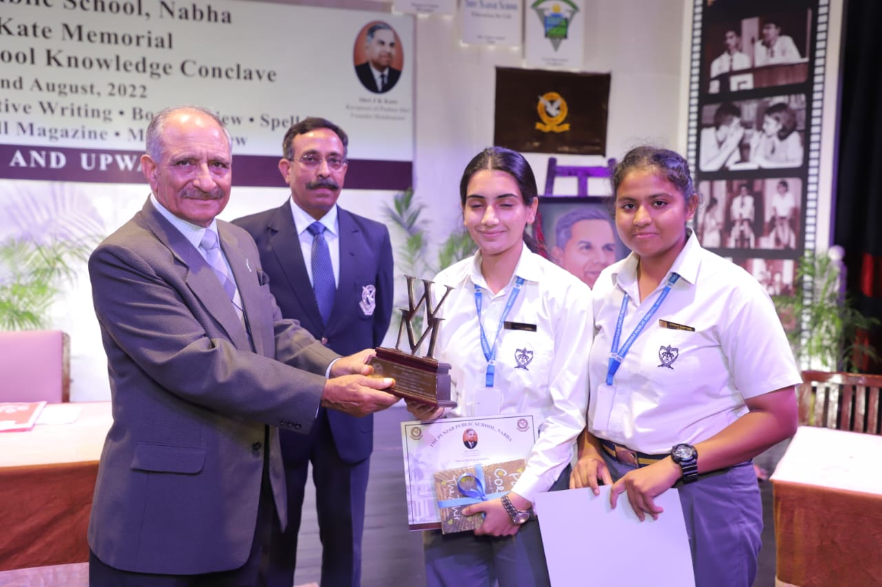 3-day Shri JK Kate Memorial All India Inter-School Knowledge Conclave concluded at PPS on August 22, 2022. Lt Gen TK Sapru, PVSM, YSM (Retd) and Member of the Executive Committee and Board of Governors of the school presided over the proceedings. A total of twelve (12) schools made it to the prestigious event. The conclave comprised of eight (8) events, viz English Debate, Creative Writing, Quiz, Book Review, Movie Review, Wall Magazine, Spell Bee and Storytelling. English Debate and Spell Bee were the main highlights of the final day. Yadavindra Public School, Patiala emerged victorious in English Debate followed by PPS as the runner-up. In Spell Bee, Deepanshu Bhushan from Shiv Nadar School, Noida emerged victorious followed by Kanishk Goyal from PPS as the runner-up.
