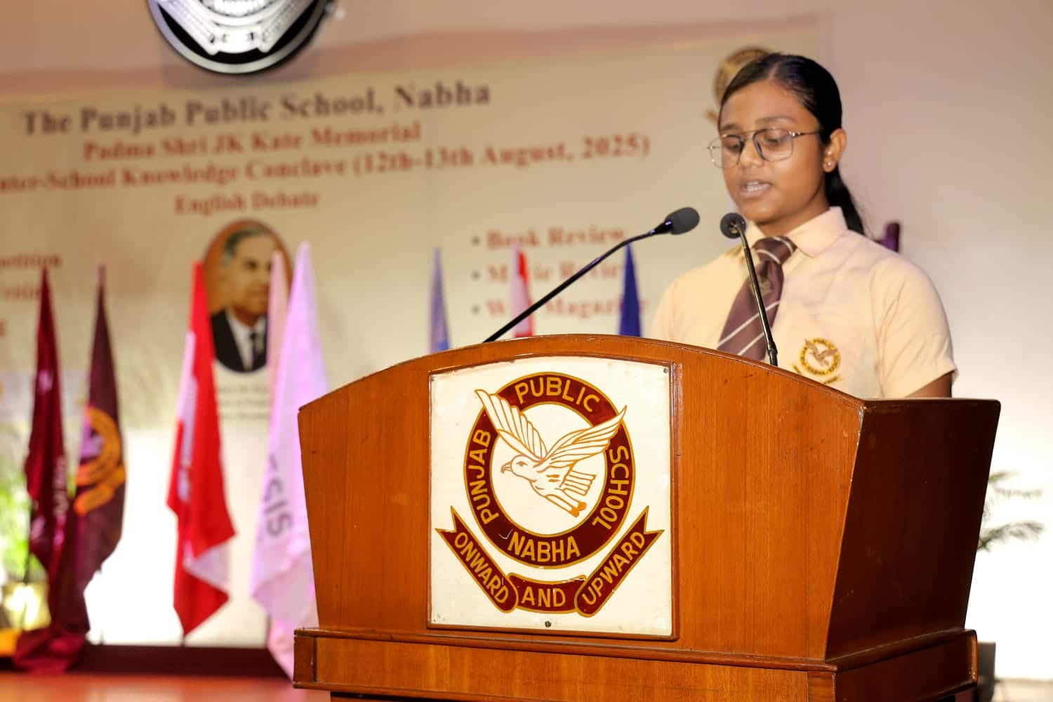 In the later part of the inaugural day, Dr Sakoon Singh, a noted writer presided over the Turncoat Round of the Multi-Format English Debate and Book Review Competition. The participants reviewed Live While You’re Alive by Shiv Khera. The day set an inspiring tone for the conclave, bringing together young minds eager to showcase their skills across multiple disciplines. Dr Sakoon Singh complimented the participants for their thought-provoking Oral Presentations. Dr DC Sharma, Headmaster, The Punjab Public School thanked the chief guest for her encouraging words for the participants and presented her with a token of deeply felt respect and gratitude.